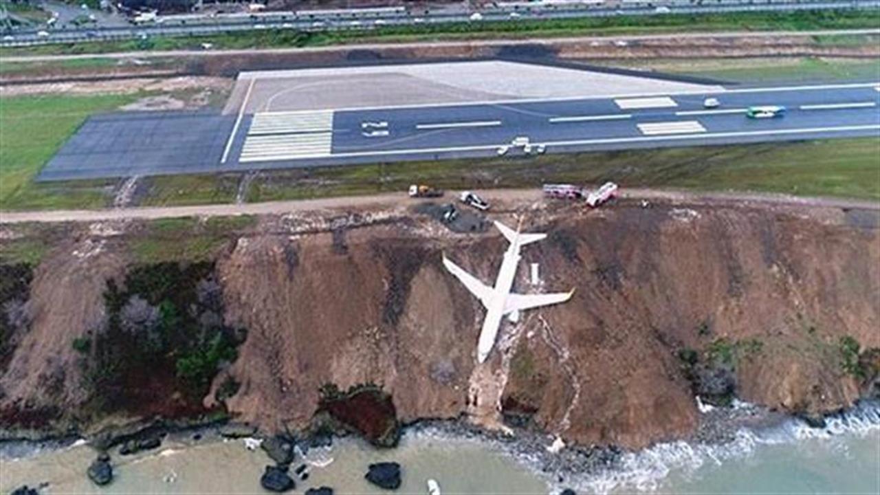 Αεροσκάφος της Pegasus Airlines, που πραγματοποιούσε πτήση από την Άγκυρα προς την Τραπεζούντα, δεν κατάφερε να ευθυγραμμιστεί με τον διάδρομο προσγείωσης, με αποτέλεσμα να πέσει από τον γκρεμό και να ακινητοποιηθεί λίγα μέτρα πάνω από τη Μαύρη Θάλασσα.