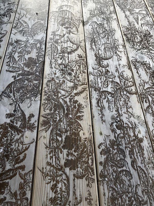 Ο πάγος το πρωί φτιάχνει όμορφα σχήματα πάνω στο δάπεδο