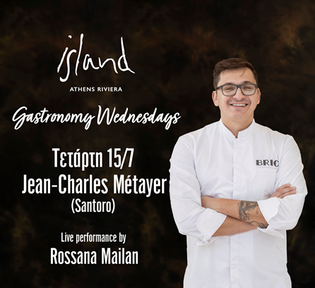 Το Island της Αθηναϊκής Ριβιέρας δίνοντας έμφαση για άλλη μια χρονιά στην υψηλή γαστρονομία, αφιερώνει μια Τετάρτη κάθε μήνα σε ένα βραβευμένο chef. Τη Τετάρτη 15 Ιουλίου φιλοξενεί τον βραβευμένο Γάλλο chef, Jean - Charles Métayer.