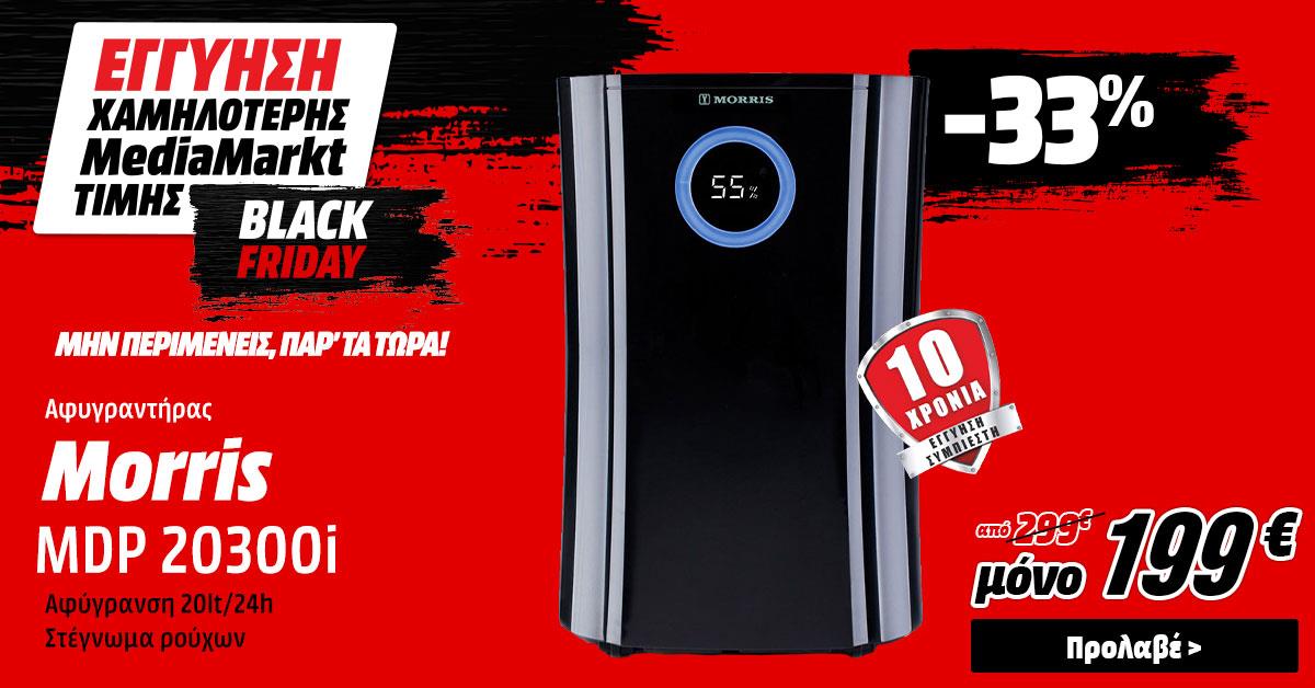 Για σήμερα, οι Black Friday Προσφορές της Ημέρας που ξεχωρίσαμε είναι : • Για εσένα που θες νέο αφυγραντήρα: Πρόλαβε εικοσάλιτρο αφυγραντήρα Morris με ιονιστή και τέσσερα στάδια φιλτραρίσματος από 299 μόνο 199 ευρώ! • Για εσένα που θέλεις νέα τηλεόραση: Πρόλαβε τηλεόραση TCL 50P610 UHD 4K από 449€ μόνο 299€! • Και αν ψάχνεις για κινηματογραφική εμπειρία 75 ιντσών: Τώρα μπορείς να βρεις τη Samsung QLED 8K Q800Tμε όφελος 3.000€, από 5.999€ στα 2.999€. • Για εσένα που χρειάζεται ανανέωση το πλυντήριο ρούχων σου: Πρόλαβε το MORRIS WIW 91209 από 398,99€ στα 279€.