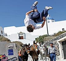 Οι κορυφαίοι αθλητές freerunning και parkour δίνουν ραντεβού στη μοναδική Σαντορίνη για ένα αγώνα παγκόσμιας εμβέλειας, με την υποστήριξη του Red Bull.