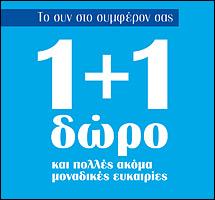 Διπλό το όφελος για τους καταναλωτές που θα επιλέξουν την Μαρινόπουλος Α.Ε. για τις αγορές τους, καθώς μέχρι τις 9 Μαρτίου θα ισχύει η προσφορά «1+1 δώρο» για μεγάλη γκάμα βασικών ειδών και προϊόντων.