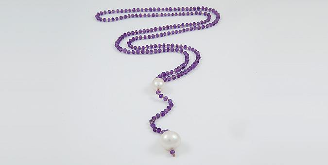 Ροζάριο με αμέθυστο και μαργαριτάρια KR23912 122€ Αμέθυστος: Εξαιρετικά ισχυρή και προστατευτική πέτρα. Παραδοσιακά τη φορούσαν για να αποφύγουν τη μέθη και την υπερβολή. Βοηθά στην εγκατάλειψη των κακών συνηθειών και των εμποδίων καθώς ανοίγει μια άλλη πραγματικότητα, μεταλλάσσοντας την ενέργεια σε αγάπη. Βοηθάει στους πονοκέφαλους και ενισχύει το ανοσοποιητικό σύστημα. Φροντίδα: Καθαρισμός γίνεται μόνο με σαπούνι και νερό, ενώ πρέπει να αποφεύγεται ο καθαρισμός με χρήση ατμού. Αποφορτίζεται στο νερό και επαναφορτίζεται στο φως του ήλιου. Προσοχή η έκθεση μεγάλης διάρκειας στο ήλιο μπορεί να ξεθωριάσει το χρώμα του.