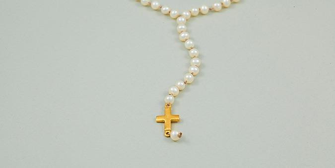 Ροζάριο από λευκό μαργαριτάρι με σταυρουδάκια από επιχρυσωμένο ασήμι KRG94 129€ Μαργαριτάρι: Το μαργαριτάρι χαρίζει αισιοδοξία, ζωτικότητα, ευεξία, υγεία, μακροζωία και δύναμη. Ένα κόσμημα με μαργαριτάρι μπορεί να φέρει πλούτη σε όποιον το φοράει και να βελτιώσει τα οικονομικά του και τις συνθήκες της εργασίας του. Προσφέρει γαλήνη, ηρεμία, ειλικρίνεια, αγνότητα και ακεραιότητα χαρακτήρα. Βοηθά στη θεραπεία παθήσεων του λαιμού και των πνευμόνων. Φροντίδα: Τα μαργαριτάρια πρέπει να προστατεύονται από τη ζεστή ή τη φλόγα, τα οξέα, τον ιδρώτα και τα καλλυντικά. Καθαρίζεται μόνο με σαπούνι και νερό ενώ πρέπει να αποφεύγεται ο καθαρισμός με χρήση ατμού.