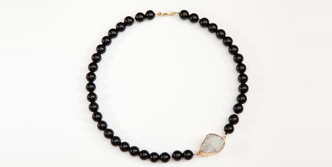 Κολιέ από μαύρο γυαλιστερό όνυχα με χαλκηδόνιο KWG101023 64€ Όνυχας: Ο Όνυχας είναι η πέτρα της δύναμης, παρέχει στήριξη σε δύσκολες και μπερδεμένες καταστάσεις. Η πέτρα αυτή προωθεί το σφρίγος, την σταθερότητα, την αντοχή και γενικά προσδίδει αυτοέλεγχο, είναι ένα διανοητικό τονωτικό που ανακουφίζει τους υπερβολικούς φόβους και τις ανησυχίες. Ενισχύει την καρδιά και γενικά το κυκλοφορικό σύστημα, αλλά και τα νεφρά. Φροντίδα: Αποφορτίζεται με το νερό και φορτίζεται στο φως του Ήλιου. Καθαρίζεται μόνο με σαπούνι και νερό με μία πολύ μαλακή βούρτσα ή πανί. Το ξεπλένετε καλά και το αφήνετε να στεγνώσει. Απαγορεύεται η χρήση χημικών.