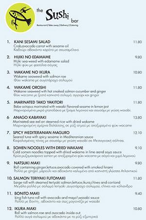 *Σε όλα τα The Sushi bar υπάρχουν οι υπηρεσίες Take out, Delivery & Catering.