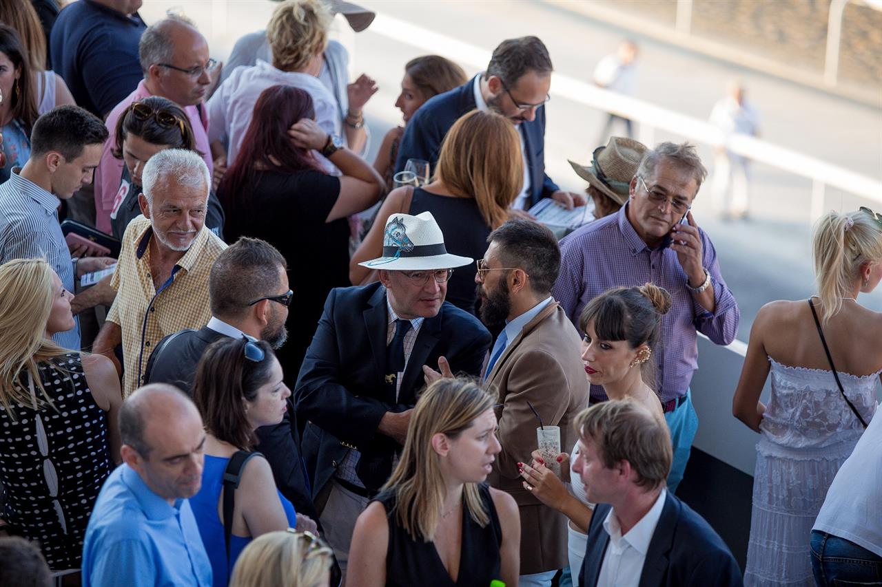 Το σκηνικό του 70ου Ελληνικού Ντέρμπι στις εξέδρες συνέθεταν χαρούμενες οικογένειες, παρέες από φίλους, παλιοί φανατικοί των ιπποδρομιών, επιχειρηματίες, αθλητές, καλλιτέχνες και εκπρόσωποι φορέων. Παγωτό, ποπ-κορν και κρύα αναψυκτικά για το καλωσόρισμα. Στα πηγαδάκια που δημιουργήθηκαν οι συζητήσεις τα είχαν όλα: πολιτικο-αθλητικό περιεχόμενο, καλοκαιρινές διακοπές και πολλά εγκωμιαστικά σχόλια για τις προσπάθειες του ΟΠΑΠ για την αναγέννηση των ιπποδρομιών στην Ελλάδα και την ανάκτηση της χαμένης τους δόξας. Στα γκισέ η ιπποδρομιακή ορολογία κυριαρχούσε και το ενδιαφέρον περιστρεφόταν μεταξύ άλλων στο γκανιάν, το πλασέ και το φόρκαστ.