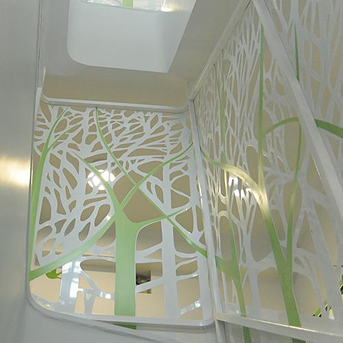 Πιο συγκεκριμένα, στο Νοσοκομείο «Η Αγία Σοφία», η θεματολογία που διέπει τις ανά όροφο θεματικές ενότητες των Νοσηλευτικών Μονάδων, αντλεί έμπνευση από την ιστορική, κοινωνική και διανοητική εξέλιξη της ανθρωπότητας και θα παρουσιάζει μεγάλα επιτεύγματα της ανθρώπινης διάνοιας υπό τύπο παιχνιδιού. Επιπλέον, βασικό δημιουργικό στοιχείο για τη διακόσμηση του Νοσοκομείου είναι το συνεχώς εξελισσόμενο δέντρο της ζωής, της επιστήμης και της κοινωνίας, που καρποί του υπήρξαν όλες οι ανθρώπινες επινοήσεις. Το στοιχείο αυτό θα συνενώσει όλες τις επιμέρους θεματικές ενότητες, καθώς θα εξελίσσεται περιστρεφόμενο με τη μορφή υψηλού προστατευτικού κιγκλιδώματος στους έλικες των δύο κλιμακοστασίων του κτιρίου.