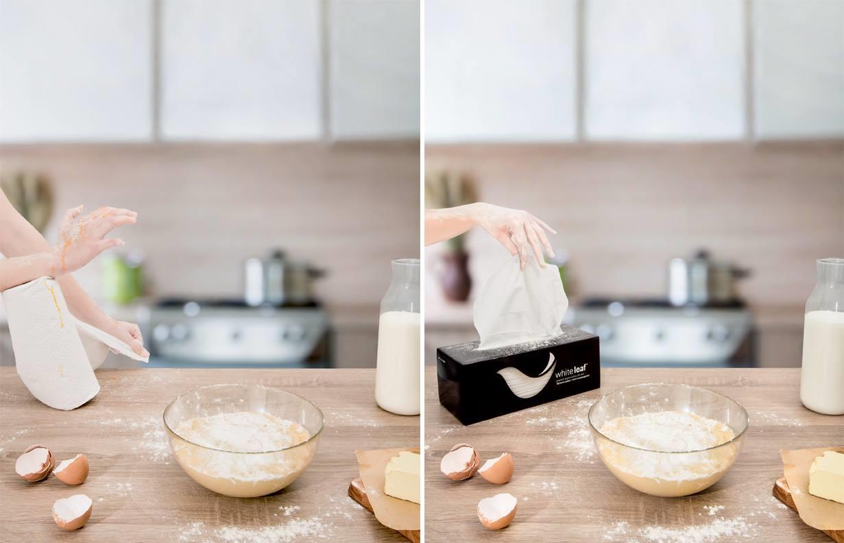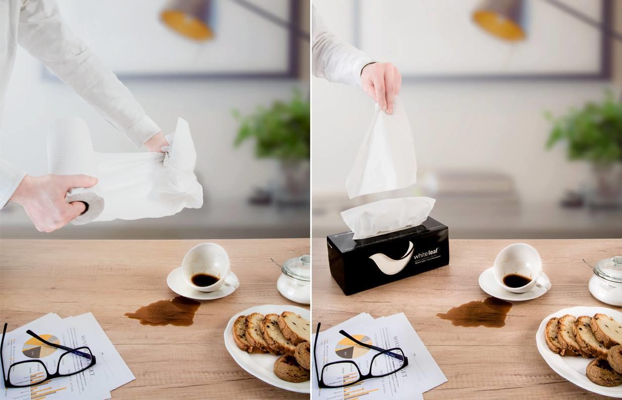Οι χειροπετσέτες White Leaf® δημιουργήθηκαν για να κάνουν τον καθημερινό καθαρισμό και το στέγνωμα επιφανειών πιο εύκολο από ποτέ. Απορροφητικές, ανθεκτικές και προστατευμένες από σκόνη, υγρασία και επιβλαβείς μικροοργανισμούς. Δεν περιέχουν κόλλα και χρωματικές ουσίες. Παραμένουν καθαρές καθ’ όλη τη διάρκεια της ζωής τους.