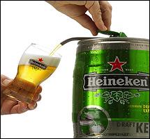 Το πεντάλιτρο βαρελάκι της δημοφιλούς μπύρας Heineken μοιάζει με γιγάντιο κουτάκι μπύρας, αλλά δεν είναι απλά μία ακόμη συσκευασία. Διαθέτει υψηλής τεχνολογίας μηχανισμό με χρωματική ένδειξη, που σας ενημερώνει πότε η μπύρα έχει έρθει στην κατάλληλη θερμοκρασία στο ψυγείο σας. Το μίας χρήσης «πακέτο» της Heineken θα το βρείτε στα super-markets και στα κεντρικά σημεία πώλησης στην τιμή των 16 ευρώ περίπου. Η εταιρία παρέχει λεπτομερείς οδηγίες και συμβουλές για να διαχειριστείτε το βαρελάκι σας, τις οποίες μπορείτε να δείτε
