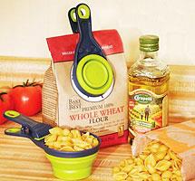 Πτυσσόμενος δοσομετρητής-μανταλάκι Χρήσιμο, δύο-σε-ένα αξεσουάρ που σας βοηθά να υπολογίσετε μερίδες (η χωρητικότητά του είναι 237ml) αλλά και να κρατήσετε κλειστές συσκευασίες με προϊόντα σε μισογεμάτα σακουλάκια. Η τιμή του είναι 7,50€.