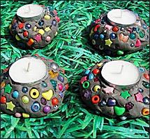 Κηροπήγια από πηλό και χάντρες ή κουμπιά