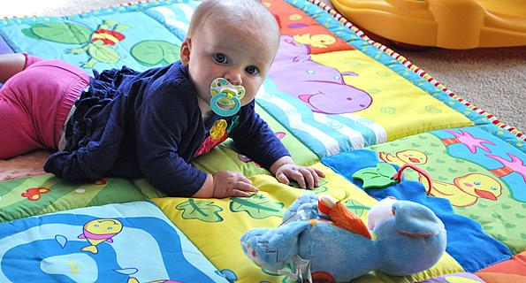 -Από τον έκτο-έβδομο μήνα, τα οπτικά και ακουστικά ερεθίσματα προσελκύουν το βρέφος, και η κατασκευή σχημάτων από έντονα χρώματα ή η γνωριμία με καθημερινά αντικείμενα αποτελούν μια καλή αρχή: Αφήστε τα, υπό το βλέμμα σας πάντα, να περιεργαστούν τις ξύλινες κουτάλες της κουζίνας, τους μεγάλους κρίκους της κουρτίνας, κυλινδρικά αντικείμενα σε ένα καλάθι, και ό,τι άλλο μπορεί να υποπέσει στο βλέμμα του και να του εξάψει το ενδιαφέρον.