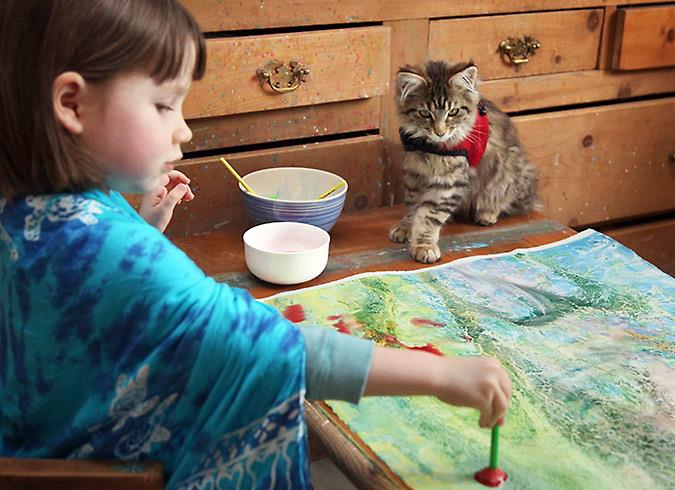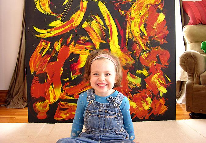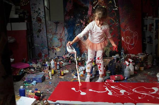 Η επτάχρονη Aelita Andre επί τω έργω. Θα μπορούσαμε να την χαρακτηρίσουμε ως τον… μικρό Τζάκσον Πόλοκ. Η 4χρονη Maria Olmsted ποζάρει δίπλα σε μια ζωγραφιά της. Τα έργα της πωλούνται έναντι αρκετών εκατομμυρίων σε συλλέκτες από όλον τον κόσμο.