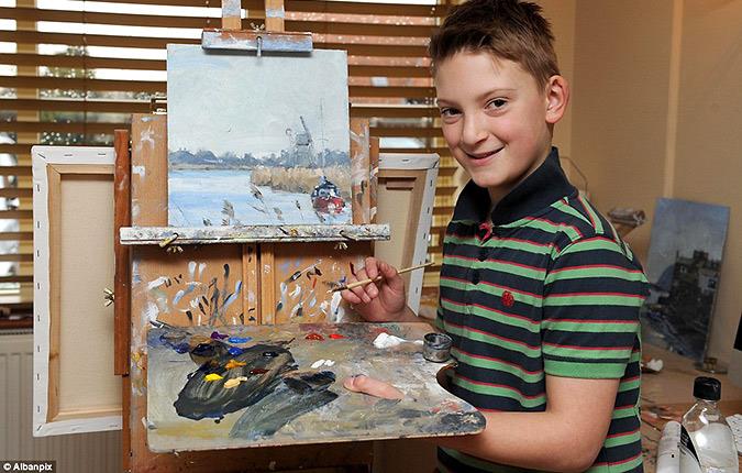 Ο 9χρονος Kieron Williamson και τα έργα του. Τον χαρακτηρίζουν ως «Μίνι Μονέ». Τα συμπεράσματα δικά σας. «Σε αγαπώ πολύ μανούλα. Άγγελος». Όμορφη ζωγραφιά, ακόμα πιο όμορφο μήνυμα. Πηγή φωτό: http://fteroygismata.blogspot.gr/2012/05/blog-post_14.html.