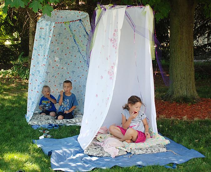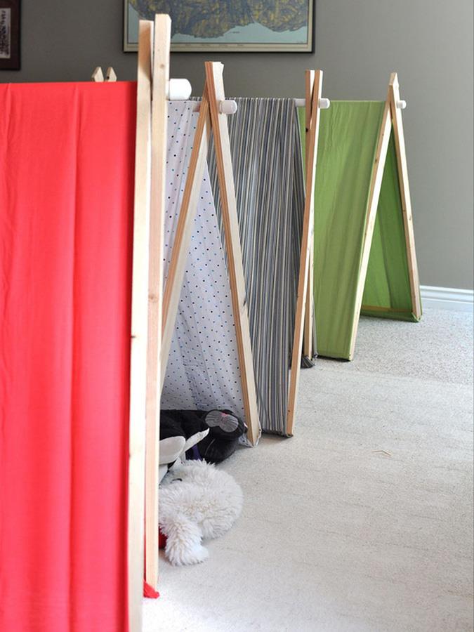 Φτιάξτε «σκηνές» για μια μίνι-κατασκήνωση στο παιδικό δωμάτιο, με παλιά σεντόνια και μερικά κομμάτια ξύλο.