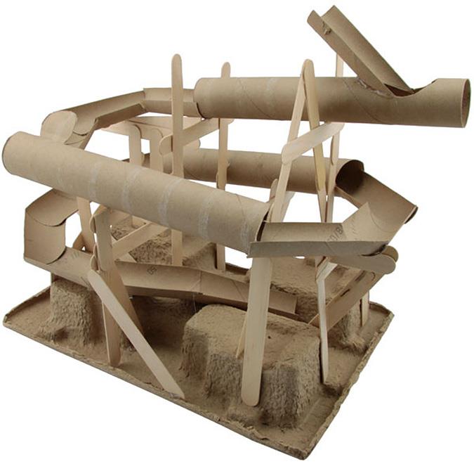 Συνδυάστε χαρτονένια ρολά από χαρτί κουζίνας ή υγείας για να φτιάξετε αυτήν την «τσουλήθρα» για βόλους.
