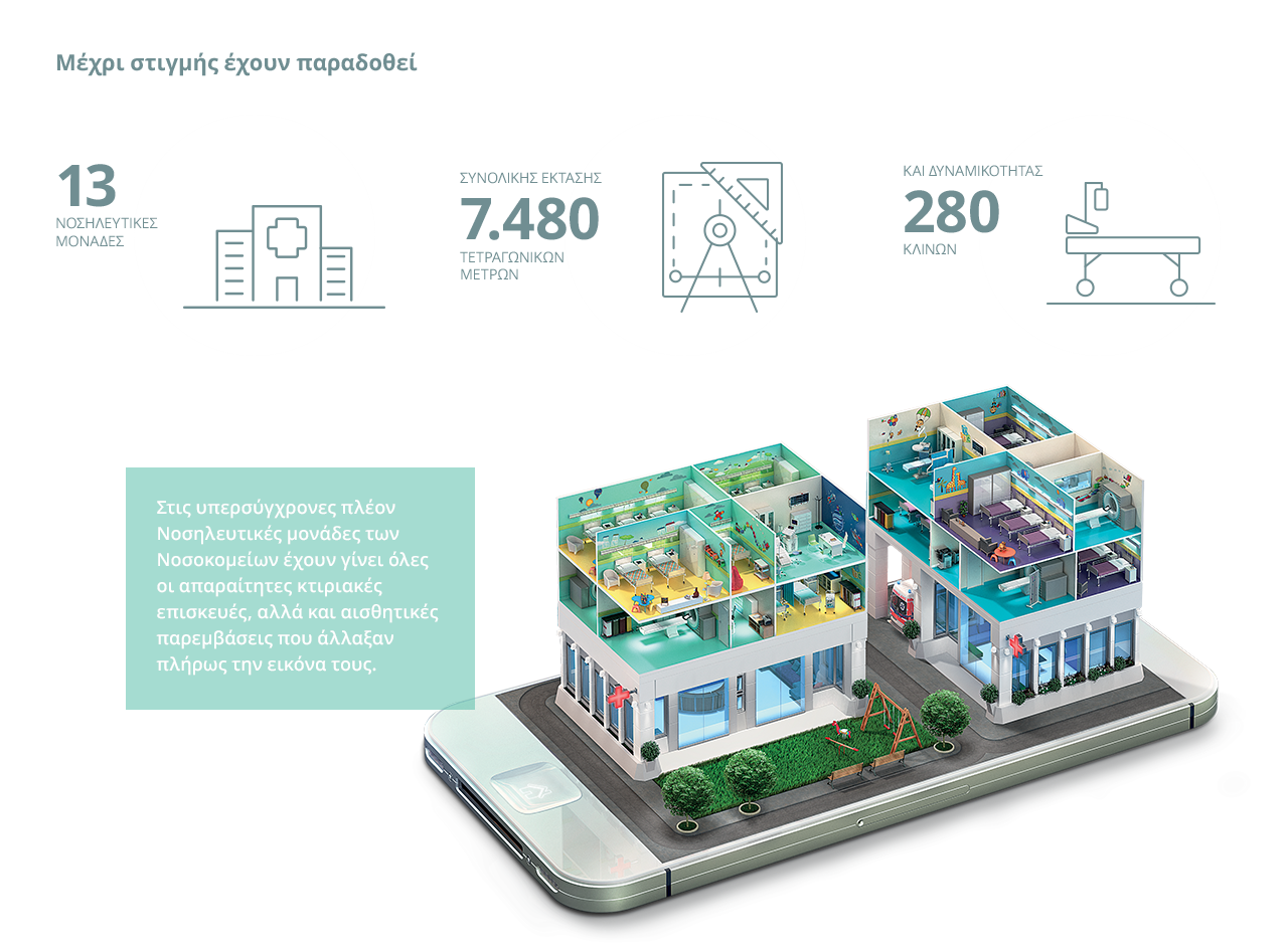 Η ανακαίνιση των δύο μεγαλύτερων παιδιατρικών νοσοκομείων της χώρας άρχισε το 2014. Σε αυτά τα τέσσερα χρόνια, ο ΟΠΑΠ έχει ολοκληρώσει το 40% της ανακαίνισης, έχοντας παραδώσει 19 έργα συνολικού εμβαδού 7.480 τετραγωνικών μέτρων, τα οποία έχουν αλλάξει ριζικά την εικόνα των δύο νοσοκομείων. Μεταξύ των έργων, συμπεριλαμβάνονται 13 νοσηλευτικές μονάδες δυναμικότητας 280 κλινών.