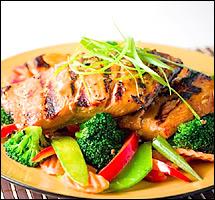 Μαριναρισμένος σολομός σχάρας με λαχανικά