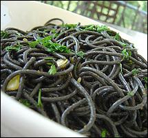 Μαύρα Tonnarelli με αυγοτάραχο και καυτερή πιπεριά