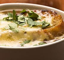 Κρεμμυδόσουπα βελουτέ και φουρνιστή μπρουσκέτα