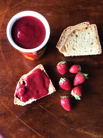 Η αναλογία φρούτου προς ζάχαρη είναι 2:1. Η κάθε δόση είναι 1 φλιτζάνι του τσαγιού. Οι πολτοποιημένες φράουλες θα είναι σε αναλογία προς τις μικρές ολόκληρες ¼:1. Αφού πλύνουμε, καθαρίσουμε και σκουπίσουμε τις φράουλες, διαλέγουμε τις πιο μικρές που θα τις κρατήσουμε ολόκληρες και θα τις ενσωματώσουμε σε δύο στάδια στη μαρμελάδα. Εάν δεν βρούμε πολύ μικρές φράουλες μέσα στο κουτί, πάλι διαλέγουμε τις μικρότερες και τις κόβουμε στη μέση (συνήθως μικρότερες φράουλες είναι οι βιολογικές, οι οποίες έχουν και εντονότερο άρωμα). Μετράμε τις μεγάλες για να υπολογίσουμε τη ζάχαρη σύμφωνα με την πιο πάνω δοσολογία, τις πολτοποιούμε στο blender και τις βάζουμε σε μία κατσαρόλα με χοντρό πάτο με την ανάλογη ζάχαρη (εάν οι φράουλες είναι ιδιαίτερα γλυκές, μειώνουμε ακόμα παραπάνω τη ζάχαρη). Φέρνουμε σε βρασμό σε μέτρια φωτιά.