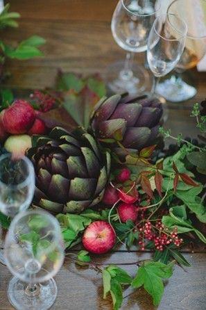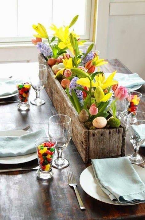 *Για τη μέση του τραπεζιού φτιάξτε μία διαφορετική σύνθεση με λουλούδια, λαχανικά και φρούτα. Αγκινάρες, σπαράγγια, φράουλες, λεμόνια, όλα δένουν καταπληκτικά με τα λουλούδια της άνοιξης. Αγοράστε τα λουλούδια σε γλαστράκια και μετά μεταφυτέψτε τα στην βεράντα σας.
