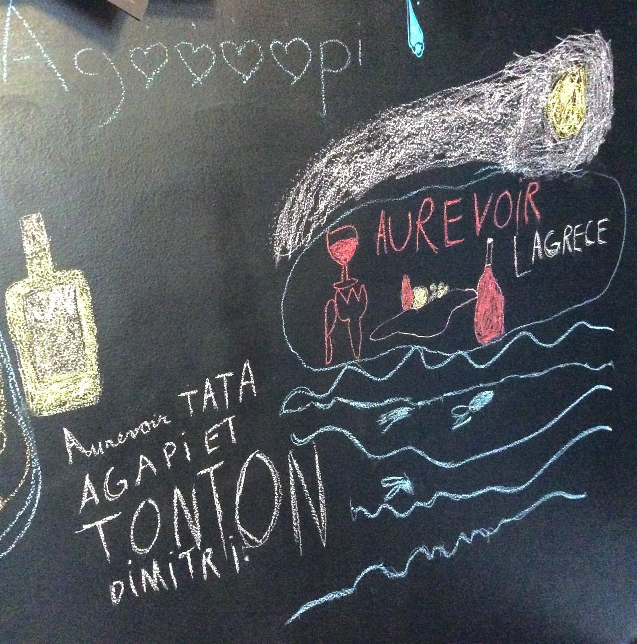 Ακόμα στον καναπέ είμαι, δεν με βλέπω να κουνιέμαι πολύ σήμερα. Μέχρι την κουζίνα θα πάω, όχι για να μαγειρέψω, αλλά για να κοιτάξω ξανά και ξανά τις ζωγραφιές που μου άφησαν στον τοίχο-μαυροπίνακα. Au revoir la Grèce, au revoir Tata Agapi et Tonton Dimitri. Au revoir μικρά μου. Α, κι ένα τελευταίο: Tα παιδιά δεν μετράνε πια τα μπάνια, ούτε τα παγωτά! .jpg)