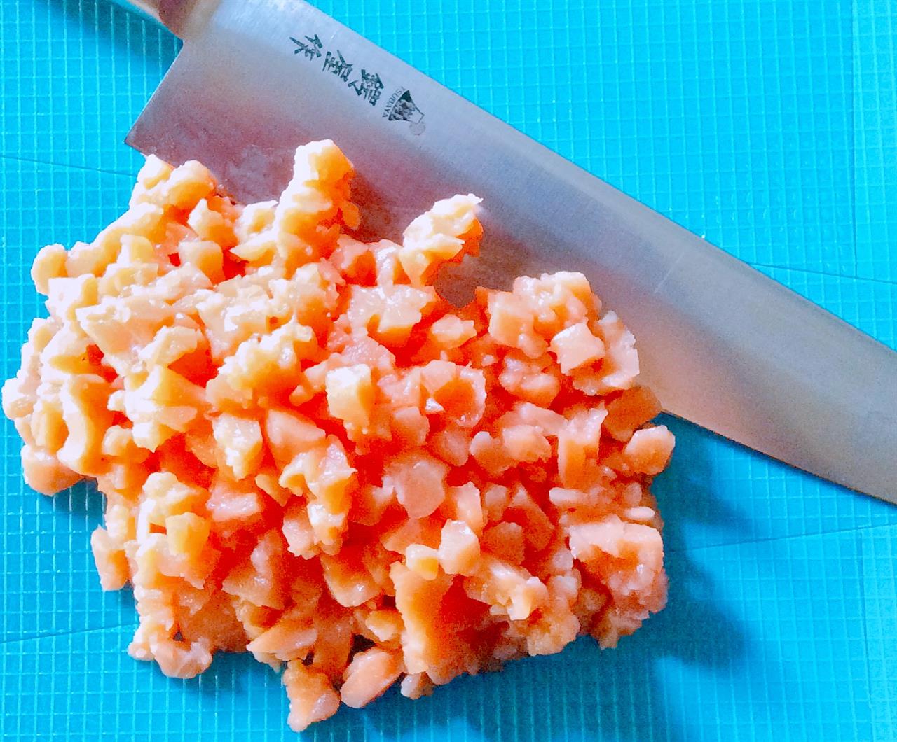 • Το κόψιμο του ψαριού σε χοντροκομμένο κιμά, που για μένα είναι ψυχοθεραπεία σωστή, θα γίνει πιο εύκολο εάν προηγουμένως βάλετε τα φιλέτα για 15΄ περίπου στην κατάψυξη. Ίσως με αυτό το κόλπο, αν φοβάστε τα μαχαίρια, να μπορέσετε να τον κόψετε σε ένα δυνατό multi, αρκεί να προσέξετε πολύ για να μην πολτοποιηθεί.