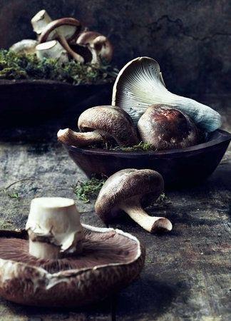 -Σε αυτό το φαγητό έβαλα μόνο φρέσκα μανιτάρια: 500 γρ. μεγάλα λευκά, 500 γρ. μεγάλα καφετιά και 200 γρ. shiitake. Όλα τα είδη μανιταριών είναι ευπρόσδεκτα.