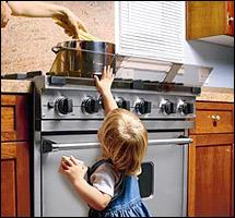 Μαγειρεύετε χρησιμοποιώντας, όσο είναι δυνατόν, τα πίσω «μάτια» της κουζίνας, έχοντας τα χερούλια των κατσαρολικών γυρισμένα προς τα μέσα. Ακόμα, απομακρύνετε από εύκολα προσεγγίσιμα σημεία απορρυπαντικά, σφουγγάρια, αλλά και τα πιατάκια με τις τροφές του σκύλου ή της γάτας και, εν ανάγκη, τον κάδο των σκουπιδιών. Έχετε πάντα υπ’όψιν ότι το μωρό σας μπορεί να βάλει στο στόμα του και να καταπιεί τα πάντα! Ακόμα και τα μικρά, αναμνηστικά μαγνητάκια του ψυγείου σας.
