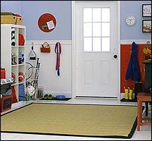 Ξεκινήστε στήνοντας μία γωνία «της βροχής». Καλύψτε ένα μέρος του τοίχου με αδιάβροχο ύφασμα και καρφώστε κρεμάστρες πάνω του, όπου θα κρεμάτε τα μπουφάν και τα παλτά σας. Από κάτω, στρώστε ένα χαλάκι, όπου θα αφήνετε τα παπούτσια σας μόλις μπαίνετε. Έτσι, σε περίπτωση που βρέχει και επιστρέφετε στο σπίτι, αυτός ο χώρος της εισόδου θα είναι η πρώτη γραμμή «άμυνας».