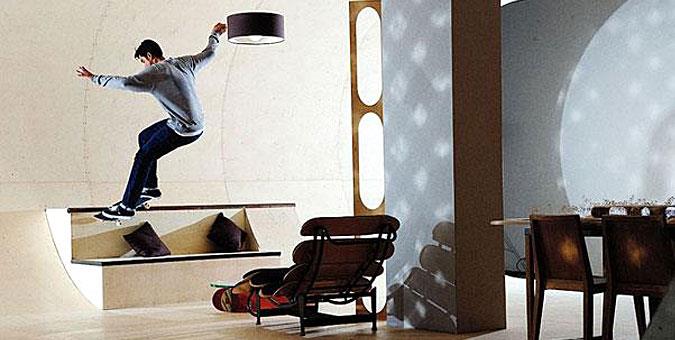 Το λεγόμενο Skateboard House σχεδιάστηκε από τον Pierre Andre Senizergues, πρωταθλητή skater, για να χτιστεί στις ΗΠΑ (εδώ βλέπετε το «πρωτότυπο» σχέδιο, όπως παρουσιάστηκε σε παριζιάνικο μουσείο). Η ιδιαιτερότητά του είναι η εξής: Κάθε χώρος και κάθε επιφάνεια του σπιτιού είναι ειδικά σχεδιασμένη έτσι ώστε να επιτρέπει το skating.