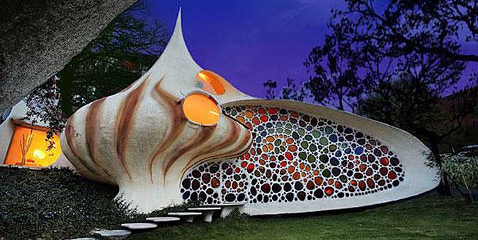 Εμπνευσμένο από τα έργα του Gaudi και του Frank Lloyd Wright, ένα ζευγάρι από το Μεξικό αποφάσισε να χτίσει για την οικογένειά του ένα σπίτι σε σχήμα κοχυλιού με φαντασμαγορικά φωτισμένη πολύχρωμη βάση και γοητευτικές καμπύλες στους χώρους του.