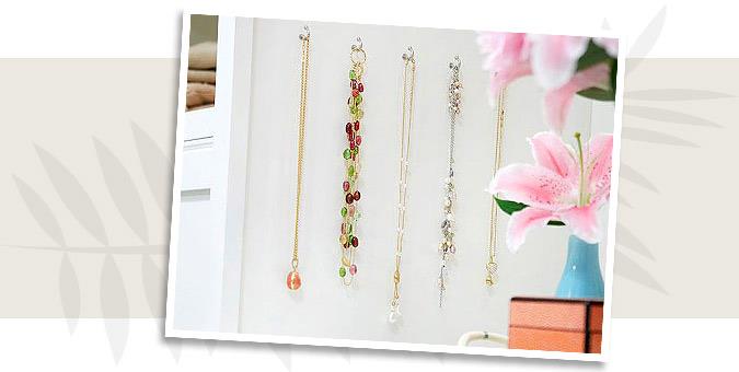 Χρησιμοποιήστε τα κοσμήματά σας σαν διακοσμητικά. Κολιέ και χάντρες όπως αυτά της φωτογραφίας μπορούν να αποτελέσουν ωραιότατες χρωματικές νότες σε έναν λευκό τοίχο στο σαλόνι ή το χολ σας.