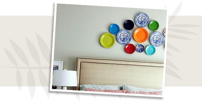 Βγάλτε από το συρτάρι τα παλιά πιάτα της γιαγιάς ή όσα δεν χρησιμοποιείτε πια και δημιουργήστε μια σύνθεση αταίριαστων σκευών που θα δώσει ποπ νότα πάνω από το κρεβάτι ή στον τοίχο του καθιστικού σας.