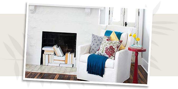 Αν έχετε τζάκι το οποίο έχει πέσει σε αχρηστία εδώ και καιρό, μπορείτε να καλύψετε τον αναξιοποίητο χώρο με παλιά βιβλία και να δώσετε την εντύπωση μιας πρωτότυπης βιβλιοθήκης στα «πόδια» του καναπέ σας. Για πιο ομοιόμορφη εικόνα, μπορείτε να ντύσετε τα εξώφυλλα των βιβλίων με χαρτί περιτυλίγματος της επιλογής σας.