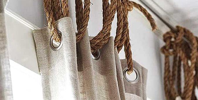 *Κάντε τις κουρτίνες… καλοκαιρινές Κατ’ αρχήν, είναι ώρα να κατεβάσετε τις βαριές σκούρες κουρτίνες που δέσποσαν στο σαλόνι όλο τον χειμώνα και να κρεμάσετε πιο ανοιχτόχρωμες, που επιτρέπουν περισσότερο φως στο σπίτι. Αλλά αυτό που θα κάνει ακόμη πιο καλοκαιρινό το «τοπίο» του σαλονιού είναι αν τις κρεμάσετε με τη βοήθεια καραβόσκοινου, όπως αυτό της φωτογραφίας.