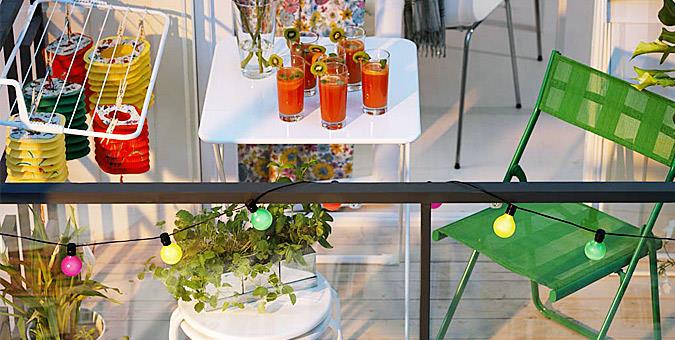 *Καλοκαιρινό πάρτι στην βεράντα Φέρτε στην βεράντα, το μπαλκόνι ή τον κήπο σας ατμόσφαιρα χαλαρού καλοκαιρινού πάρτι, επενδύοντας σε απλές καρεκλίτσες σε pop χρώματα, ένα λευκό τραπεζάκι όπου θα απολαμβάνετε τα σπιτικά κοκτέιλ με τους φίλους σας, όμορφες πινελιές, όπως τα λαμπάκια στα κάγκελα στην παραπάνω φωτό και περιποιημένες γλαστρούλες. Με άλλα λόγια, μεταφέρετε όσο μπορείτε το επίκεντρο του σπιτιού από το εσωτερικό καθιστικό… προς τα έξω.