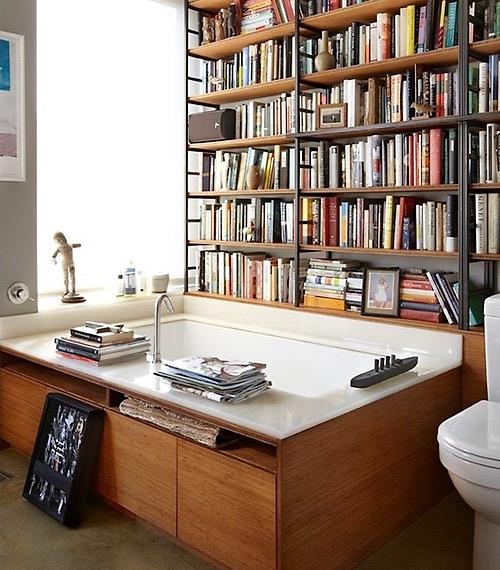 Βιβλία και στο μπάνιο. Βιβλία παντού.