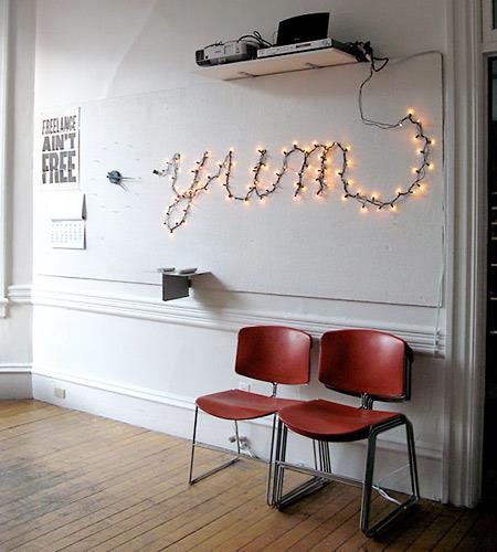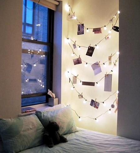 Τυλίξτε τα γύρω από έναν καθρέφτη Τυλίξτε τα σε ένα κλαδί και κρεμάστε το στον τοίχο πίσω από το κρεβάτι Φτιάξτε ένα δέντρο για το υπνοδωμάτιό σας Στερεώστε πάνω τους φωτογραφίες με μανταλάκια Τυλίξτε τα σε καλαθάκια, η γεμίστε καλαθάκια με αυτά Βάλτε τα μέσα σε μπουκάλια κρασιού Χρησιμοποιήστε χάρτινα ποτηράκια για να φτιάξετε μια ωραιότατη χειροποίητη γιρλάντα με φώτα, όπως φαίνεται στη φωτογραφία. Τυλίξτε τα με ένα χοντρό σκοινί Στερεώστε τα απλώς στον τοίχο του υπνοδωματίου Κρύψτε τα πίσω από ένα παραβάν Χρησιμοποιήστε τα για να «γράψετε» κάτι στον τοίχο Πλέξτε τα σε ένα… μαγιάτικο στεφάνι που θα κρατήσετε όλο τον χρόνο Κρεμάστε τα από την κουνουπιέρα του κρεβατιού Βάλτε τα σε ένα ημιδιαφανές πλαστικό κουτί και δημιουργήστε στη στιγμή ένα χειροποίητο τραπεζάκι που φωτίζει