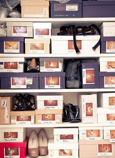 Κρατήστε όλα τα κουτιά των παπουτσιών σας, κολλήστε μικρές φωτογραφίες των παπουτσιών στη ράχη του κουτιού τους και έτσι δεν θα χρειαστεί να ψάχνετε για εκείνες τις μαύρες μπότες και να κάνετε άνω-κάτω όλα σας τα υποδήματα μέχρι να τις βρείτε: