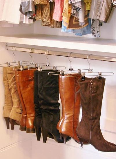 Χρησιμοποιήστε κρεμάστρες για να κρατήσετε όρθιες τις μπότες σας και να μην «τσακίζονται» και σκονίζονται στο πάτωμα: