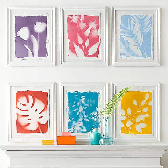 Πλάθω… φυλλαράκια: Θυμάστε τις χειροτεχνίες που κάναμε στο σχολείο; Το μόνο που θα χρειαστείτε για να φτιάξετε καδράκια σαν αυτά της φωτογραφίας είναι λευκό χαρτόνι, μερικά διαφορετικά φύλλα και ένα-δυο χρωματιστά σπρέι. Απλώς τοποθετείτε το φύλλο πάνω στο χαρτόνι, ψεκάζετε με το σπρέι, απομακρύνετε το φύλλο, και ιδού.