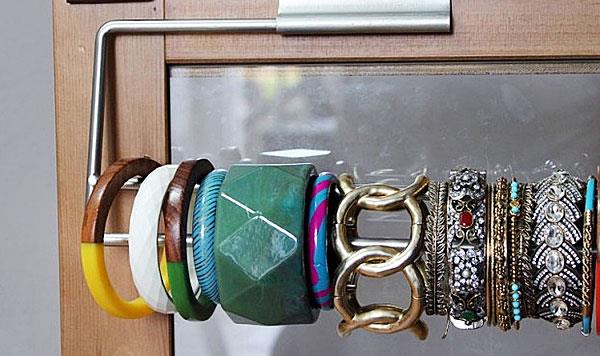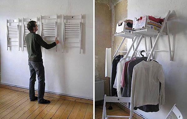 Κρεμάστε μερικές καρέκλες στον τοίχο για να δημιουργήσετε αποθηκευτικό χώρο από το πουθενά. Διπλώστε ένα post-it κάτω από το σημείο που ανοίγετε τρύπα στον τοίχο, για να μαζεύει την σκόνη. Κρατήστε τακτοποιημένα και εύκολα προσβάσιμα τα USB καλώδια, με τα κλιπάκια που χρησιμοποιούμε για τα χαρτιά στο γραφείο. Βάλτε ταμπελάκια στα καλώδια που έχετε σε πολύμπριζα (του υπολογιστή, της τηλεόρασης, του DVD και πάει λέγοντας) για να τα ξεχωρίζετε εύκολα. Χρησιμοποιήστε παλιά χερούλια πόρτας για να κρεμάτε τις πετσέτες σας στο μπάνιο. Τακτοποιήστε βραχιόλια και κοσμήματα σε μια θήκη για χαρτί κουζίνας. Χρησιμοποιήστε παλιά συρτάρια για να φτιάξετε ραφάκια. Οι επιτοίχιες θήκες των κρασιών γίνονται τέλειες θήκες για τις πετσέτες σας. Οι πλαστικές σας κρεμάστρες μπορούν να κάνουν ένα μικρό θαύμα με τα καλώδια που κρέμονται ή σέρνονται από δω κι από κει. Κολλήστε μια μαγνητική ταινία κάτω από τα ντουλάπια σας, για να στερεώσετε τα βαζάκια με τα μπαχαρικά σας. Φτιάξτε μόνοι σας ραφάκια για τα βιβλία σας, όπως στη φωτογραφία. Κρεμάστε τα τζην σας από γαντζάκια σαν αυτά για την κουρτίνα του μπάνιου, για να τα βρίσκετε πιο εύκολα. Χρησιμοποιήστε τα «δαχτυλίδια» των αναψυκτικών για να… διπλασιάσετε την χωρητικότητα της ντουλάπας σας σε κρεμάστρες. Πήρατε πίτσα για το σπίτι; Βάλτε ένα μπουκαλάκι κάτω από τα κουτιά για να μην ταρακουνιούνται στο κάθισμα.