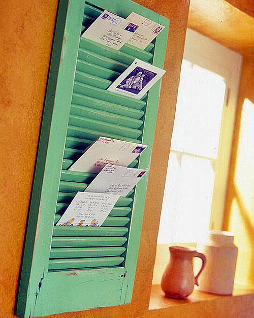 Αξιοποιήστε ένα παλιό παντζούρι για μια vintage νότα στον τοίχο δίπλα στο γραφείο σας, και κολλήστε στα «στόρια» του κάρτες, post it ή την αλληλογραφία σας.