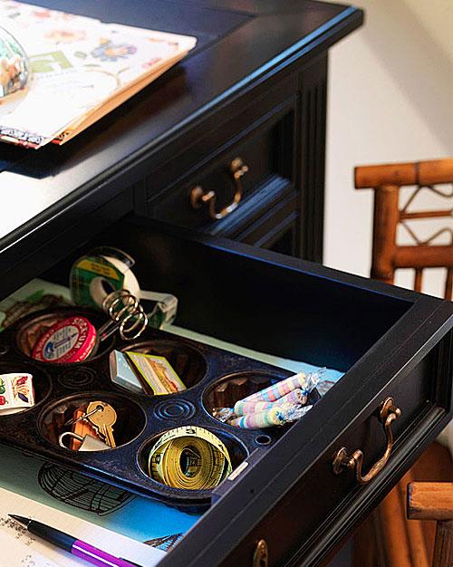 Ανάλογης χρήσης μπορούν να τύχουν και οι θήκες για ψήσιμο μάφιν, που μπορούν να φιλοξενήσουν τα κλειδιά σας, μικροεργαλεία, συνδετήρες, σελοτέιπ κλπ και να μπουν στο συρτάρι σας.