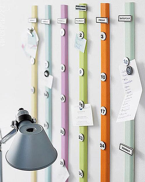 Μεταφέρετε την ατζέντα σας… στον τοίχο, με έξι κάθετες σιδερένιες βέργες και 30 μαγνητάκια (ή αντίστοιχα έξι μαλακές μπάρες και μίνι κονκάρδες) για να δημιουργήσετε το πιο πρωτότυπο καλεντάρι και να μην ξεχνάτε ποτέ τις υποχρεώσεις και τα ραντεβού σας.