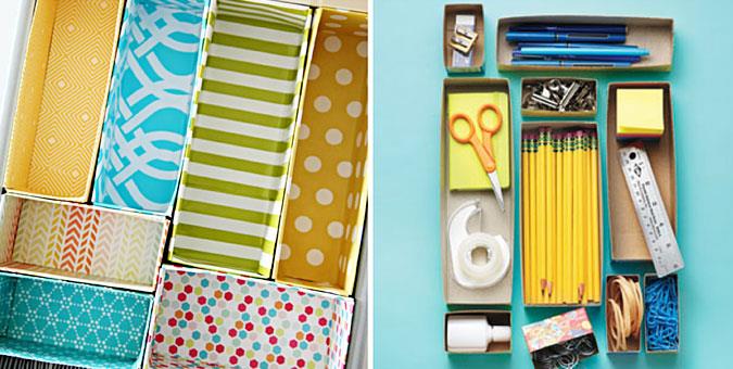 Κόψτε κουτιά από δημητριακά, ντύστε τα με χαρτί περιτυλίγματος και φτιάξτε ωραιότατες διαχωριστικές θήκες για τα συρτάρια σας.