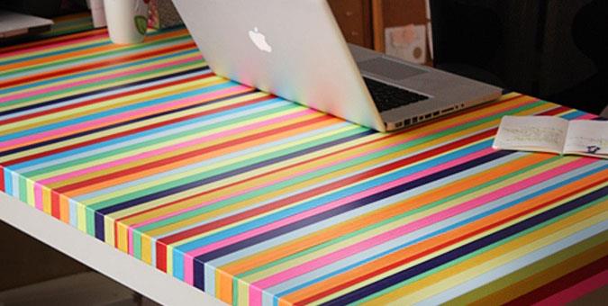 Δώστε χρώμα στην αδιάφορη επιφάνεια του γραφείου σας, με χρωματιστές κολλητικές ταινίες και δημιουργήστε αυτό το ριγέ εφέ.